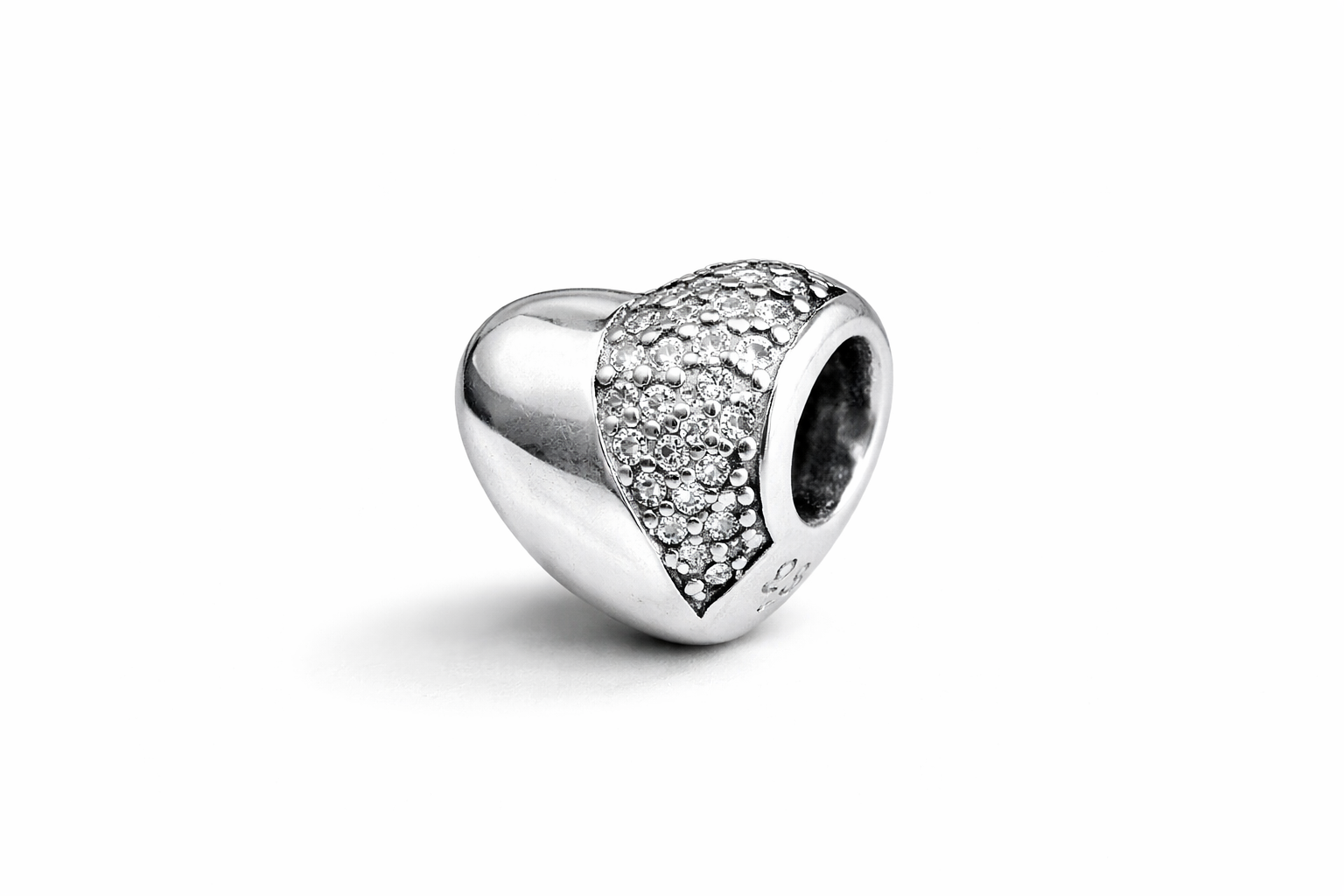 BERLOQUE CORAÇAO MEIO LISO E MEIO CRAVEJADO PRATA 925