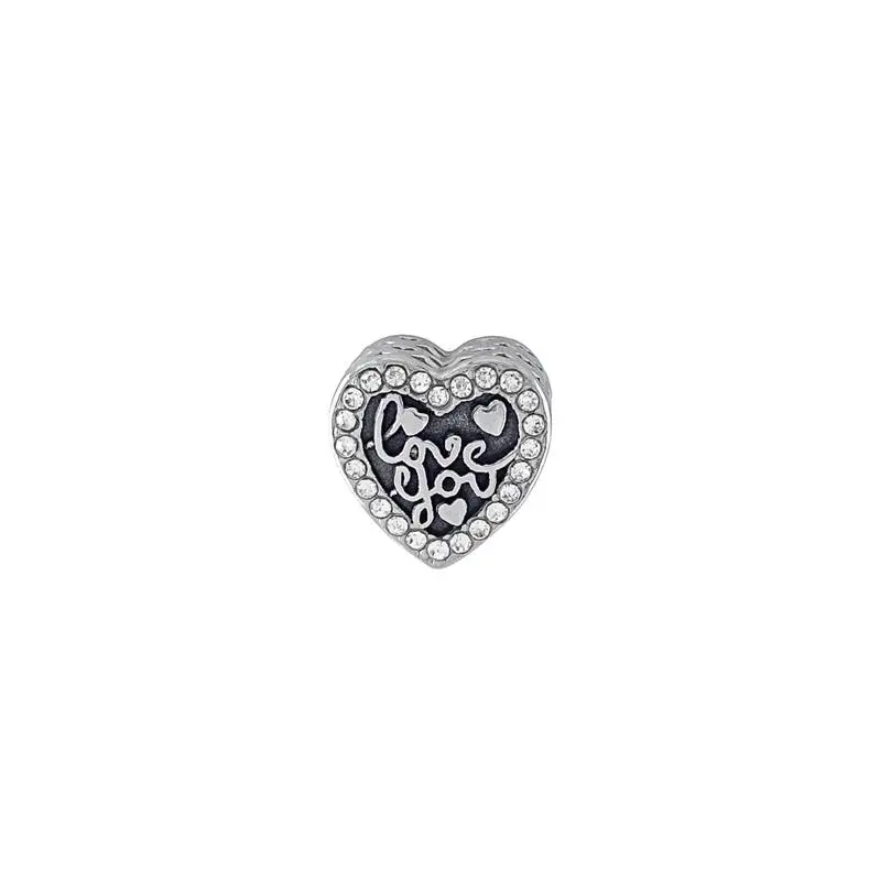 BERLOQUE SEPARADOR DE CORAÇÃO CRISTAL COM ESCRITO "LOVE YOU" em Aço inoxidavel