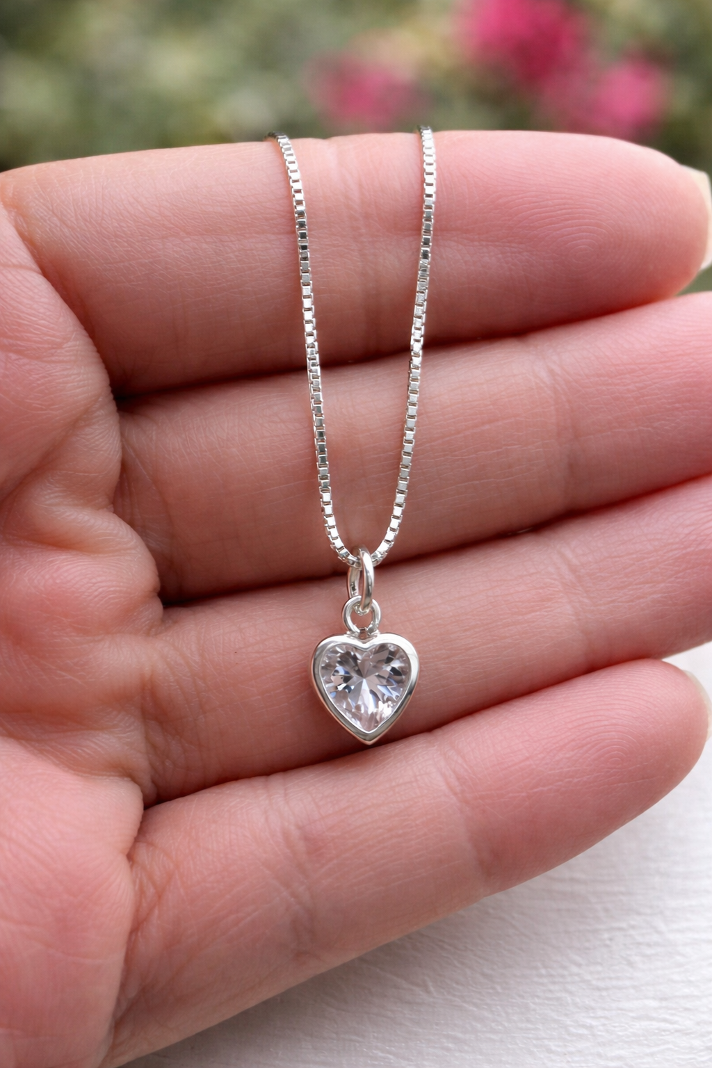Corrente veneziana 45cm em Prata 925, com ponto de Luz Coração cristal zircônia