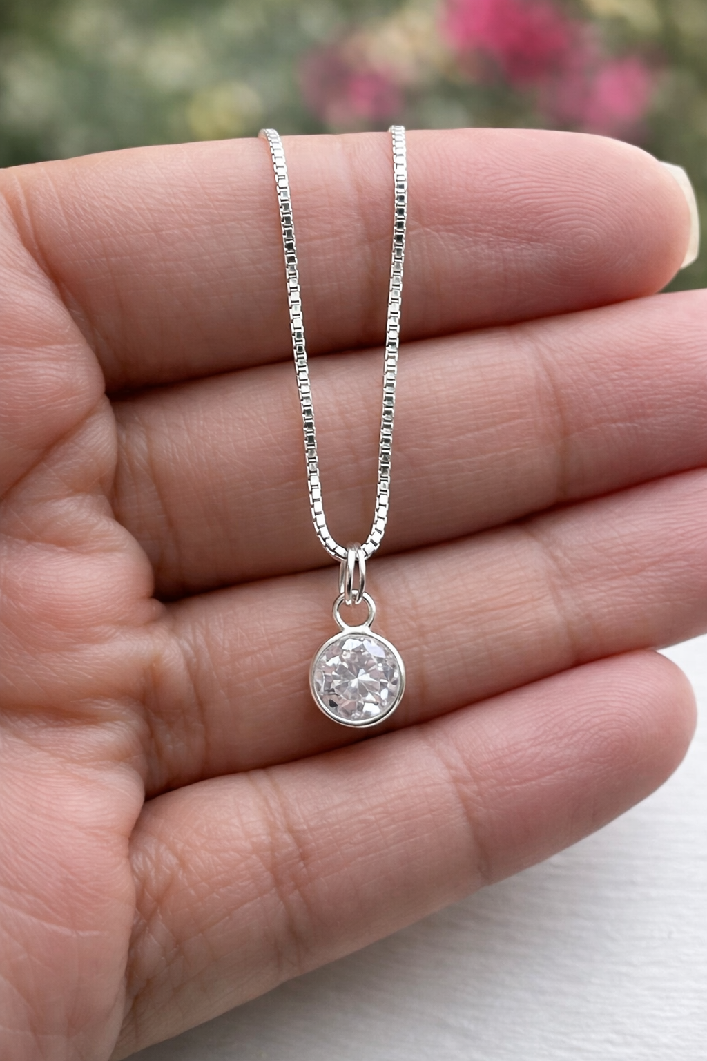 Corrente veneziana 45cm em Prata 925, com ponto de Luz Redondo de Zircônia