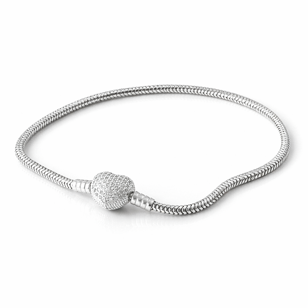 Pulseira de Berloque Fecho Coração e redondo Cravejado - 19,5cm