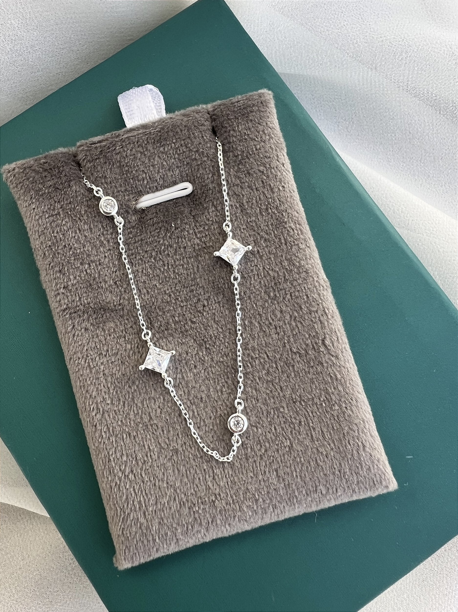 Pulseira zirconia crystal losango em prata 925