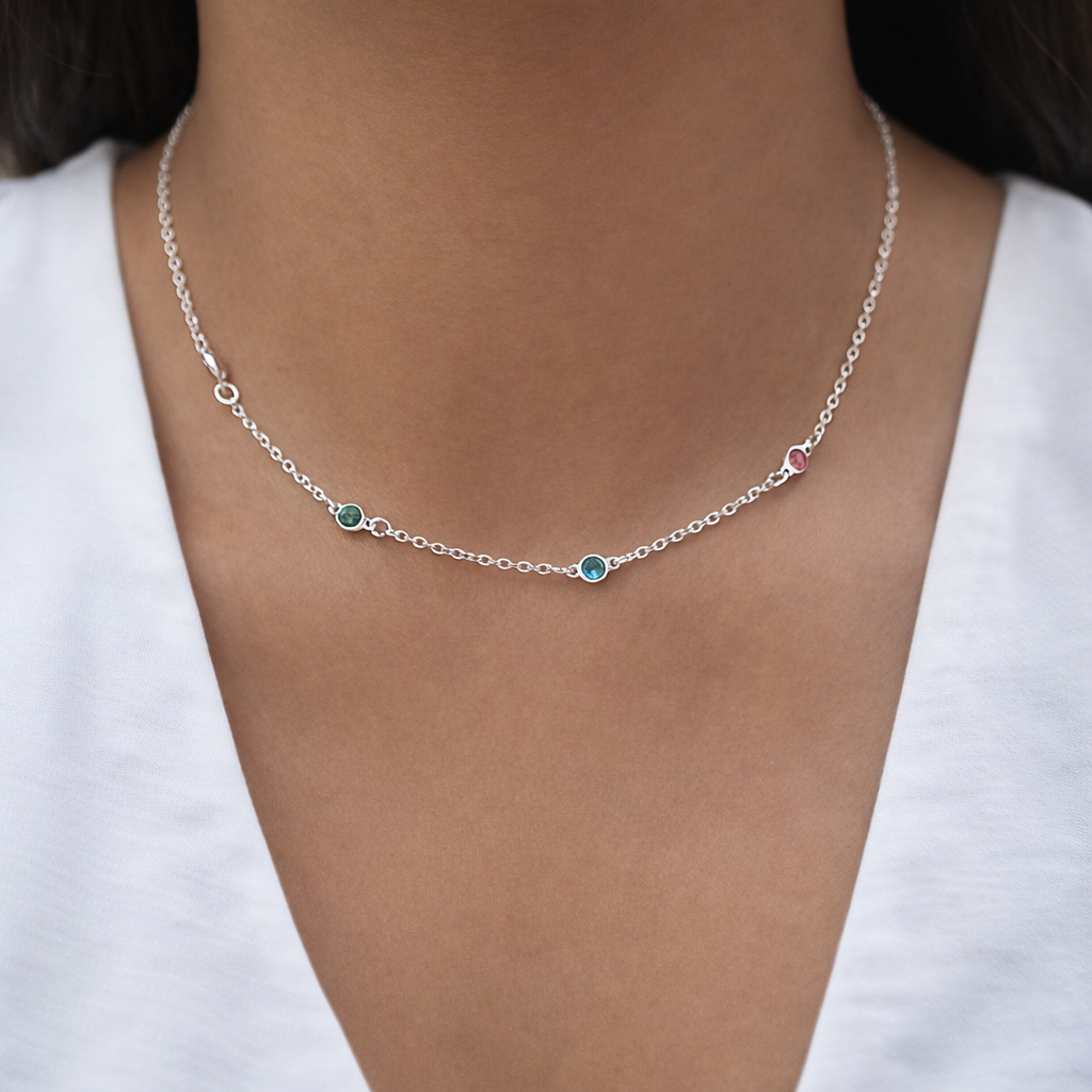 Esse colar em Prata 925 é composto por uma corrente fina com pontos de luz em zircônias coloridas, distribuídas de forma sutil ao longo da peça, criando um efeito leve e sofisticado no colo.